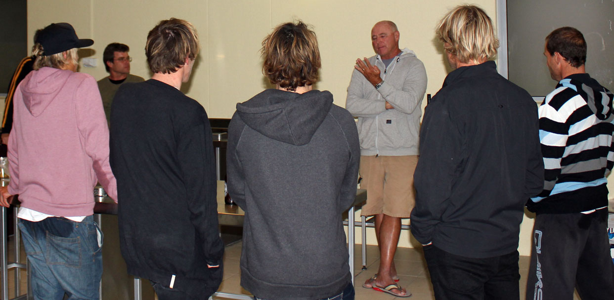 The evening before the Surf Masters finals commenced, Ian Cairns addressed the team sharing some of his invaluable experience and providing an insight into what is required to impress the judges at the contest in Port Macquarie.